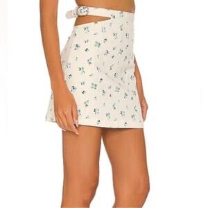 weworewhat cut out mini skirt watercolor ditsy zr5 ivory with blue floral medium
