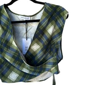 weworewhat tie back wrap top vintage plaid ywk basil multi large