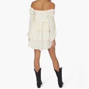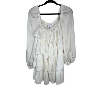 weworewhat tiered long sleeve mini dress crinkle chiffon ze1 ivory white xsmall