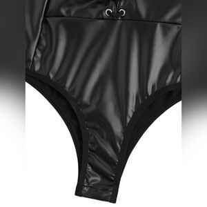Sleek and stylish black lace-up bodysuit perfect for a bold look.