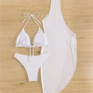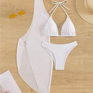 one shoulder dress knitted beachwear 3 piece swimwear plain basic bikini set
