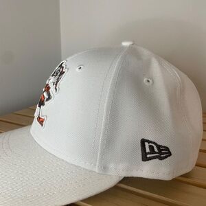For sale is a lightly worn white New Era 59FIFTY Cleveland Browns "Brownie the Elf" Omaha low profile fitted cap, size 7 1/2. The hat has been well maintained and is free from blemishes and tears.