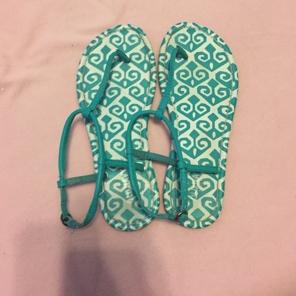 white and blue sandals