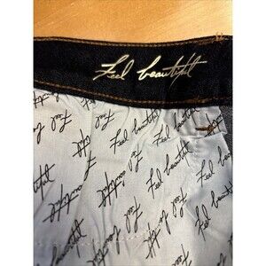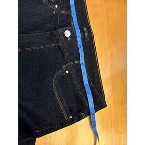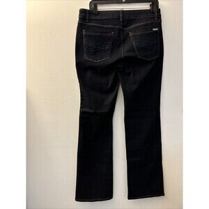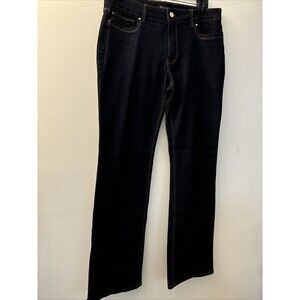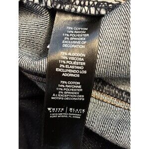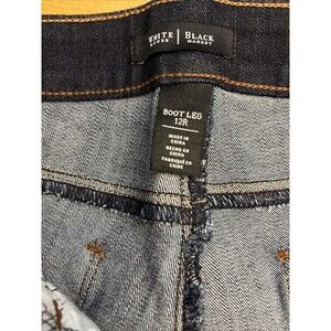 pre_owned white black blue jeans women's boot leg 12R. Stretch.