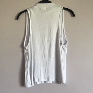 neck line goes down pretty far and the shirt is a tad see through. has a little bit of a purple tint to it. also only worn once for a friends party