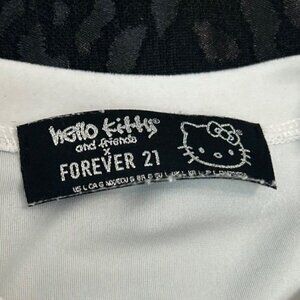 white forever 21 x hello kitty rhinestone velour top size L • good preowned cond