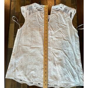 white house black market White Mesh And Cutwork Shell Sleeveless Blouse Medium
