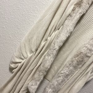 white house black market large wrap sweater l m cape fur trip ribbed poncho ta