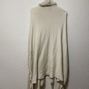 white house black market large poncho sweater cape fur trip ribbed classy ta