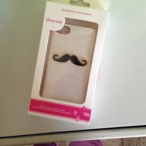 white snapon iPhone 5 case with cute mustache lined in gold! I bought two and am using a black one! looks super cute while keeping your phone protected :)