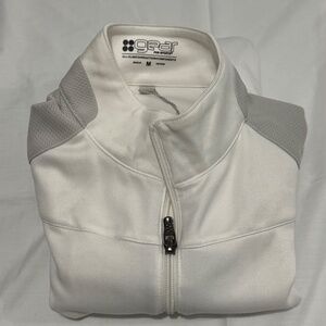 The white jacket is a stylish and practical choice for women who enjoy sports. Made of polyester with a polyester lining, this medium-sized windbreaker features a full zipper and pockets for convenience. The jacket's design is perfect for both casual wear and active pursuits, with its sleek white color and sporty theme making it a versatile addition to any wardrobe. Perfect for those who value quality and functionality in their clothing choices.
