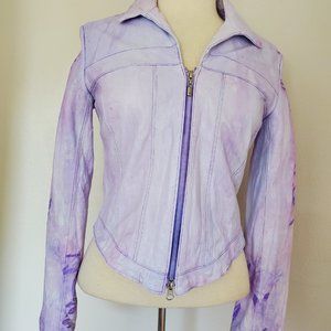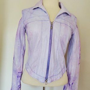 white purple pink Leather Motorcycle biker bomber Jacket tie dyed 2 4 6 XS small
