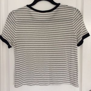 classic white ringer with black stripes! only worn a few times- in excellent condition! made of viscose, so you get great breathability like cotton with a better drape and softness! tag says small but could fit xs or small. reasonable offers always considered, and don’t hesitate to ask questions :)