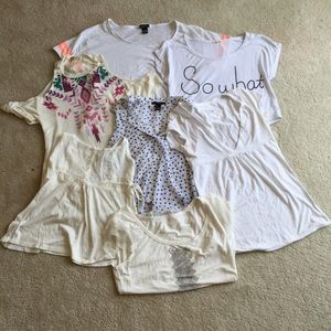 variety of white/cream shirts! everything has been worn once except for the bottom shirt