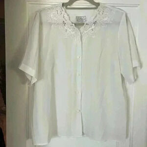 white vintage blouse with pretty lace and pearl detail button up size M/ L