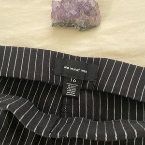 who what wear black and grey pinstriped stretchy tapered leg pants size 16