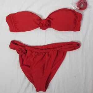 wild fable 2 Piece Bikini Red Bandeau with Rosette Size Large NWT