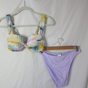 wild fable Shade & Shore 2 Piece Bikini Lavender White Green Size Medium 34C NWT