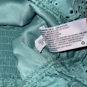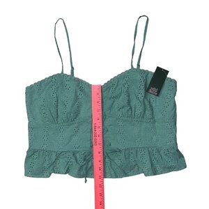 This Wild Fable women's tank top in green will add flair to your wardrobe. It features a peplum strappy lace-up design with spaghetti straps. Made from a comfortable blend of cotton and spandex. Size large.