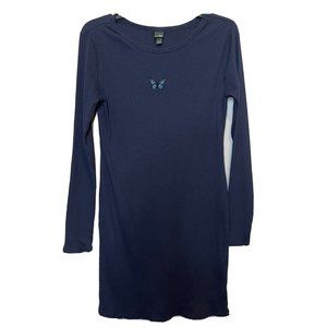 wild fable butterfly dress large blue y2k ribbed midi length fitted long sleeve