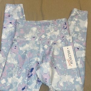 💋🦊 NWT WildFox Sweat Watercolor Spill Blue Purple Marble Leggings Size S- zippered pocket on back waistband for your cell phone!