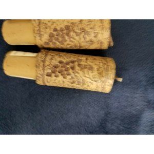 You're getting a set of 3 grape and leaf stamped design wax dripping candles for wine bottles they are 2.5 cm by 7.3 cm shaped to fit the top of your wine bottle all three have candle wicks keep away from things that could get damaged or set on fire keep away from children be sure to protect table tops and fabrics before burning