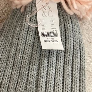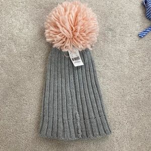 cute grey beanie with pink pom pom at the top from new york and company, tag still on