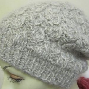 Hand knit slouchy hat in teal lambswool,angora - Size S/M - circumference 20-21'( 50-52 cm )