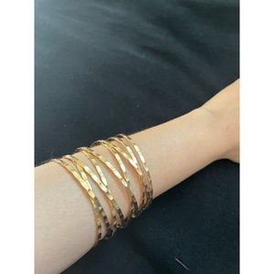 wire wide gold cuff bracelet textured statement chunky bangle layered statement