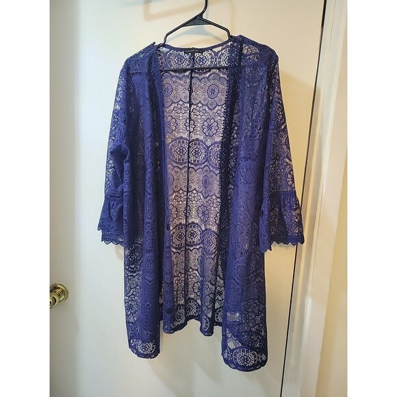 womans Shawl Beautiful Blue Long Length 3 Qtr Sleeves Cover Up