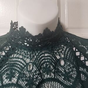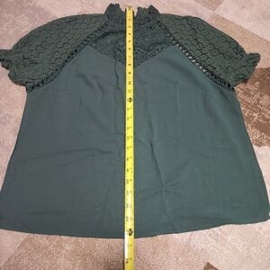 women Lace Sleeve Blouse Large Dark Green