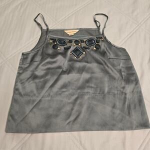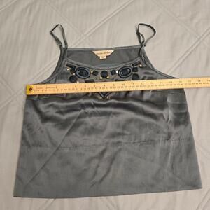 women Y2K 100% Silk Embellished Cami Tank Top Size 38 Teal Blue Boho Glam Beaded