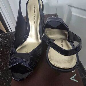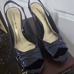 women heels size 8.5 medium navy blue sling back Antonio Melani