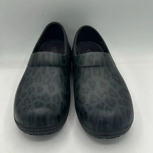 women's size 10 CROCS work Neria Pro II graphic slip resistant clogs black leopard