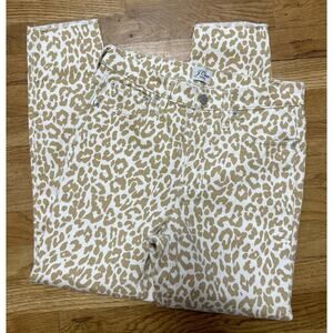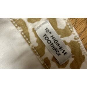 womens J.CREW white/khaki cheetah print 10" HIGH-RISE TOOTHPICK jeans sz 27 B2