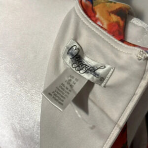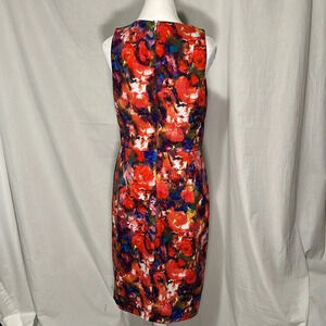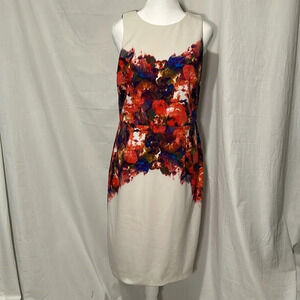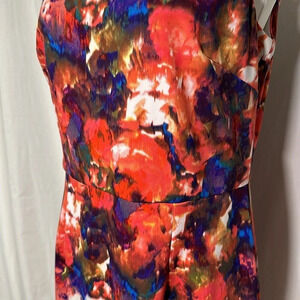 women's Maggy London colorful floral / paint splatter sleeveless dress size 10. Print over bust & waist on front, all over on back
