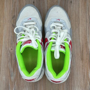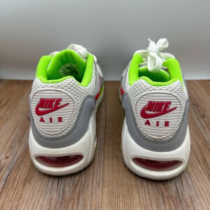 women's Nike Air Max Correlate "watermelon" (White/Pure Platinum/Wolf Grey/Fireberry) tennis shoes size 7. Worn a handful of times & realized they don't fit well. Some minor stains on the inner heels & on the white (possibly could be gotten off with a magic eraser?)
