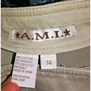 A.M.I. Beige Khaki STRETCH SKIRT Sz 14 career church cotton blend front zip EUC