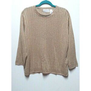 ALFRED DUNNER womens Gold Sparkle Top pullover Sz L Festive Christmas/ Holidays /Thanksgiving/ Party/ Church etc