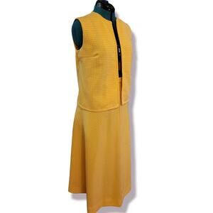womens Vintage 1970s Yellow Gigham coord set matching two piece vest maxi skirt