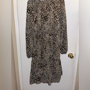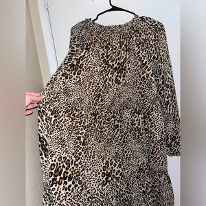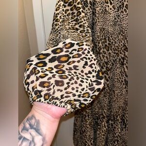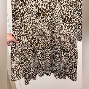 women's XXL Tiered Cheetah Print Dress With Balloon Sleeve Keyhole maxi length