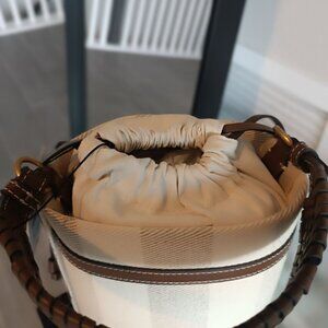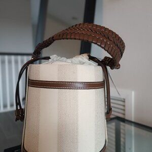 This Zara bag is a stylish top handle bag designed for women in a brown and beige color scheme. The small size of the bag makes it versatile for carrying essentials while the brown handle/strap adds a chic touch to the overall design. This bag combines functionality with a fashionable style that is perfect for many outfits.