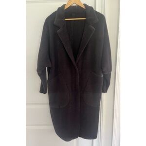 Sherpa like( soft and heavy fabric; no tag not sure what kind of material)women’s coat sz. M/L eggplant.