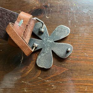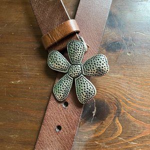 Silpada women's belt , dark brown with matte silver daisy buckle. In great condition. Length is 39" and width is about 2".