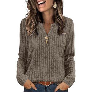 womens lightweight v neck sweater long sleeve button fall casual top shirt women