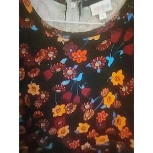 This LuLaRoe Amelia dress is perfect for any casual or party occasion. The knee-length A-line style and short sleeve design make it a versatile piece for any wardrobe. The multicolor floral pattern adds a fun and playful touch, while the lined feature provides comfort and coverage.