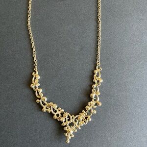 This stunning necklace features a beautiful combination of gold and pearl elements, perfect for adding a touch of elegance to any outfit.