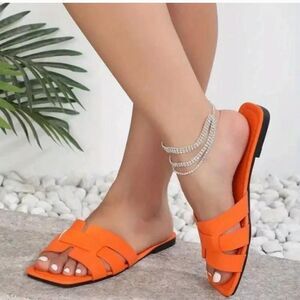 Women's Casual Flat Slides, Solid Color Square Open Toe Non Slip Shoes, Comfy Outdoor Slides