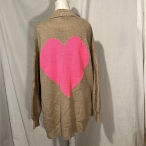 women's oversized tan & pink Crown & Ivy open front cardigan size medium. Large heart on back