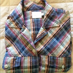 Adorable, multi colored, short waisted jacket, that's perfect for fall. This jacket is in great shape with no visible flaws. The pictures doesn’t do this jacket justice. Unfortunately I've gained weight and it no longer fits, otherwise I'd keep it